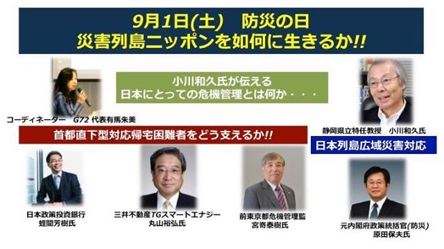 自らの被災経験から自然災害と共存する為の仕組を構築する為に、 2014年防災・災害支援に関するG72災害支援プロジェクト発足。